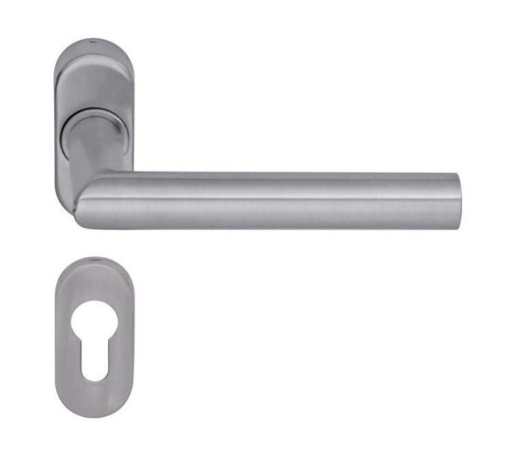Нажимные ручки dormakaba серии PURE на овальной розетке рекомендуются к установке на профильные двери, применяемые в обустройстве бизнес-центров, складских помещений и торгово-развлекательных комплексов.