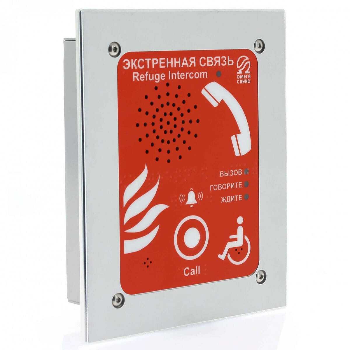 Разговор с диспетчером, в полнодуплексном режиме, происходит через встроенные в корпус абонентского устройства микрофон и громкоговоритель. Данная модель имеет прекрасный дизайн и легко вписывается в любом интерьере. На лицевой панели устройства расположены светоиндикаторы состояния устройства и кнопка вызова дежурного персонала. Все надписи на лицевой панели устройства продублированы тактильным шрифтом Брайля. Цвет лицевой панели – красный.
