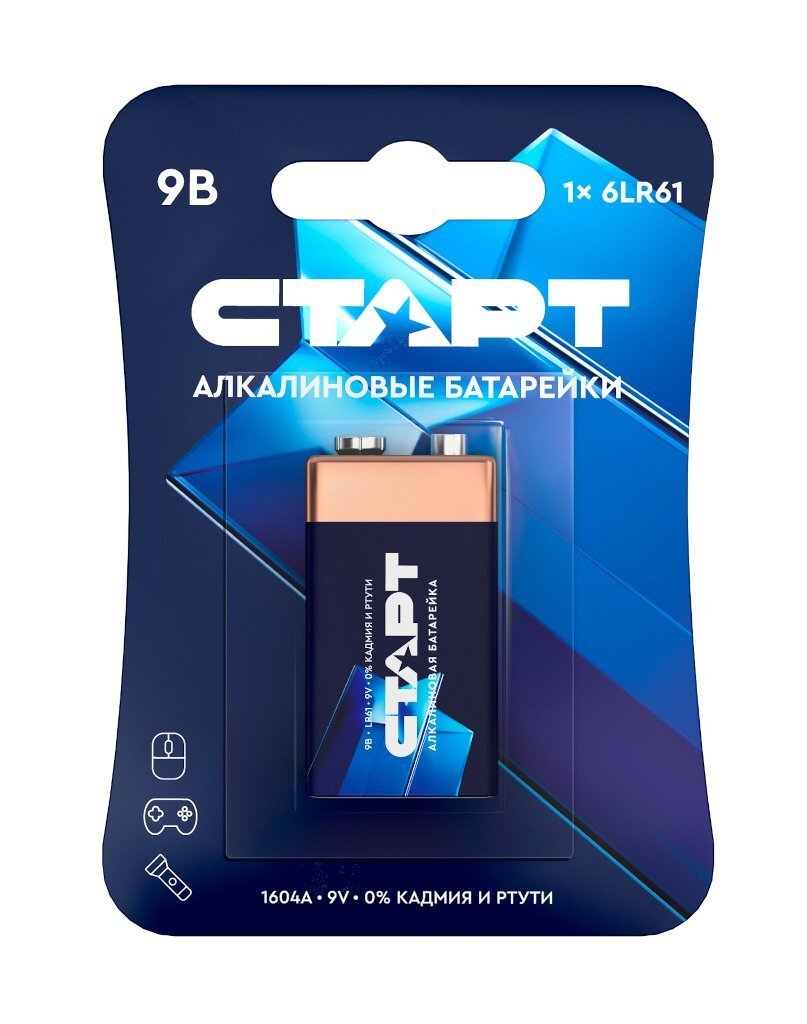 Алкалиновая батарейка СТАРТ СТАРТ 6LR61-BL1 (9 В, Крона, 6LR61), БЛИСТЕР