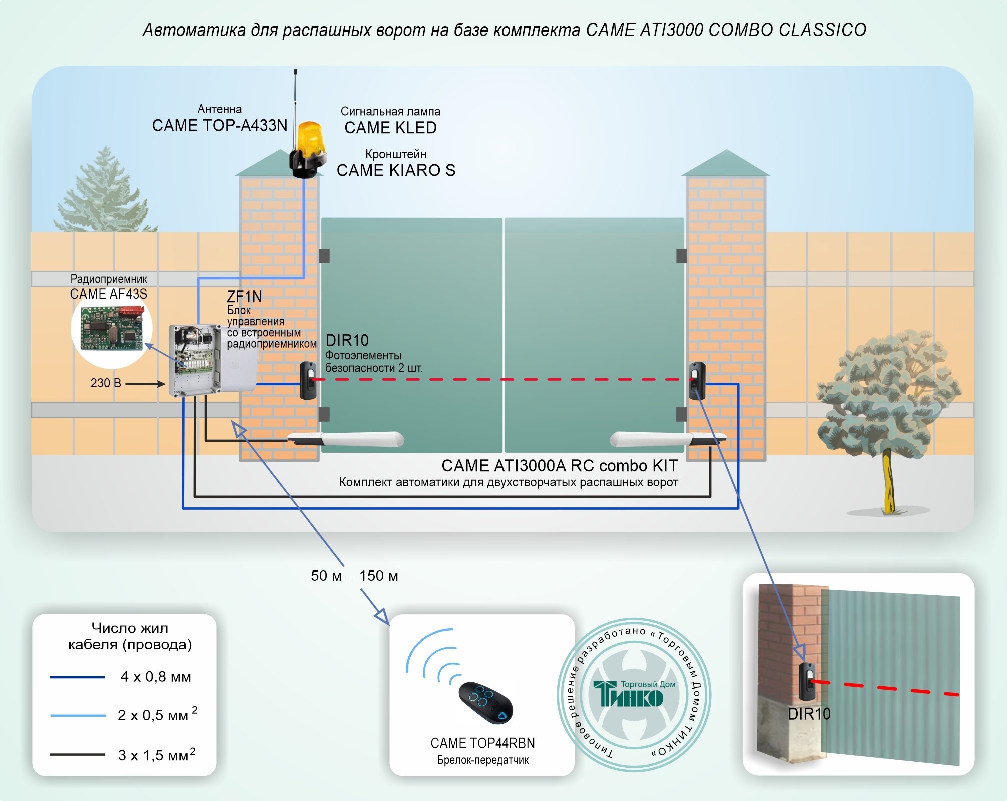 Автоматическая система контроля доступа для распашных ворот (привод линейного типа) CAME Типовое решение: СКУД-010