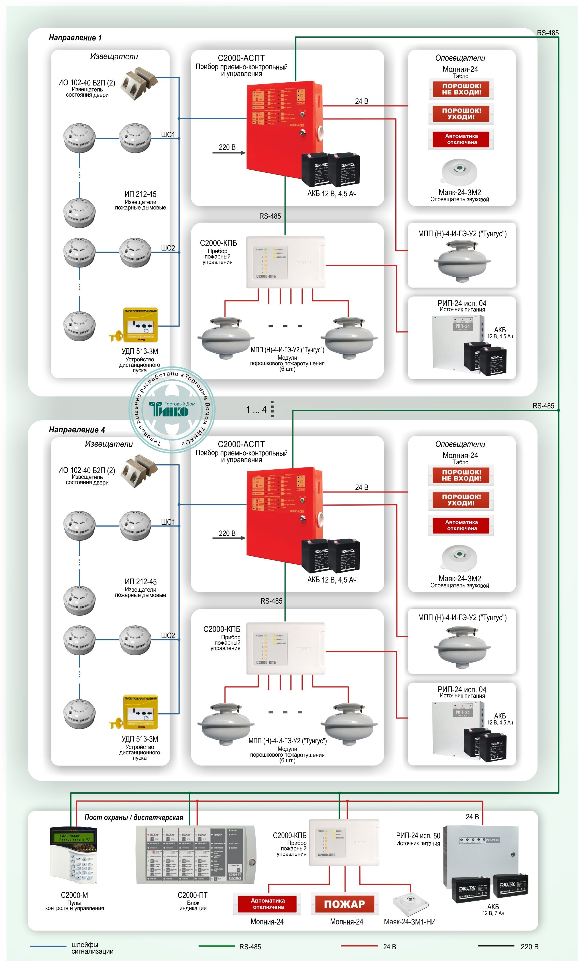 Автоматическая система порошкового пожаротушения с централизованным управлением на базе оборудования "Болид" и "Источник плюс" Болид Типовое решение: СП-007