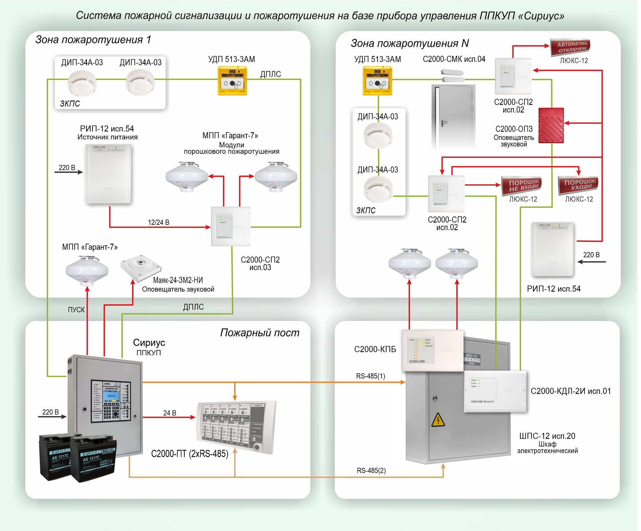 Автоматическая система пожарной сигнализации и пожаротушения на базе оборудования "Болид" и МПП "“Гарант" Болид Типовое решение: СП-012