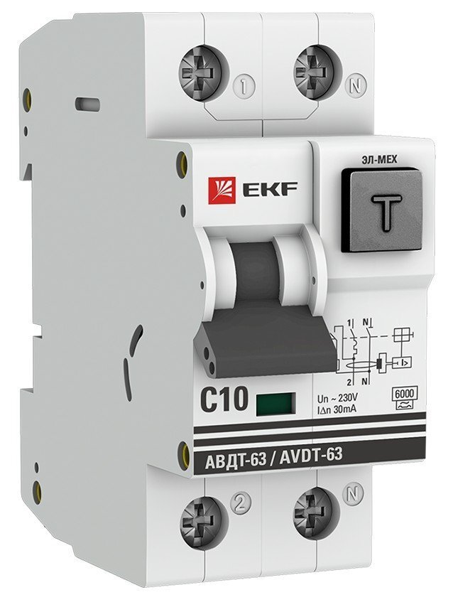 Автоматический выключатель дифференциального тока АВДТ-63 EKF PROxima представляет аппарат, сочетающий функции автоматического выключателя с электромеханическим или электронным УЗО. При обнаружении автоматическим выключателем в защищаемом участке сети тока утечки (повреждения) на землю или сверхтока (тока перегрузки или короткого замыкания) происходит срабатывание устройства, приводящее к отключению защищаемой сети. Возможна коммутация алюминиевым и медным проводником.