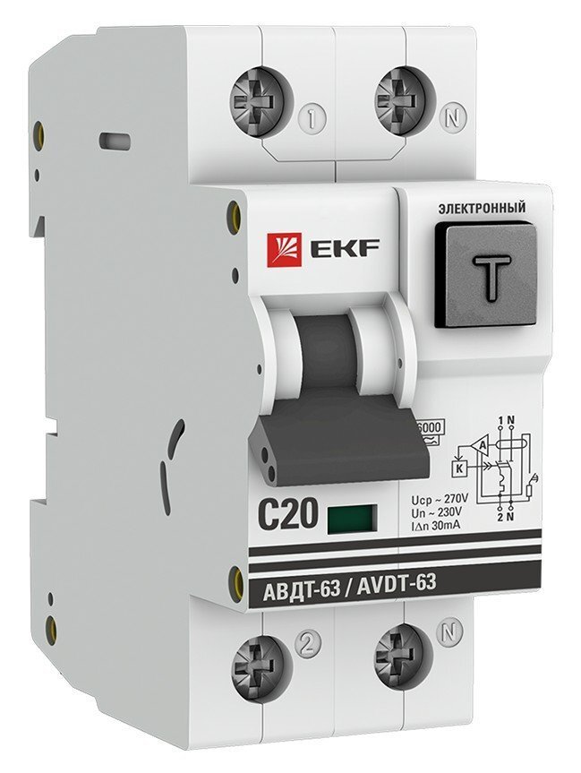 Автоматический выключатель дифференциального тока АВДТ-63 EKF PROxima представляет аппарат, сочетающий функции автоматического выключателя с электромеханическим или электронным УЗО. При обнаружении автоматическим выключателем в защищаемом участке сети тока утечки (повреждения) на землю или сверхтока (тока перегрузки или короткого замыкания) происходит срабатывание устройства, приводящее к отключению защищаемой сети. Возможна коммутация алюминиевым и медным проводником.