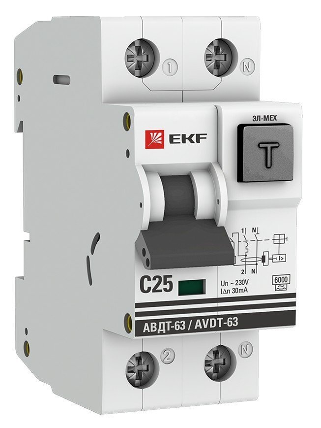 Автоматический выключатель дифференциального тока АВДТ-63 EKF PROxima представляет аппарат, сочетающий функции автоматического выключателя с электромеханическим или электронным УЗО. При обнаружении автоматическим выключателем в защищаемом участке сети тока утечки (повреждения) на землю или сверхтока (тока перегрузки или короткого замыкания) происходит срабатывание устройства, приводящее к отключению защищаемой сети. Возможна коммутация алюминиевым и медным проводником.
