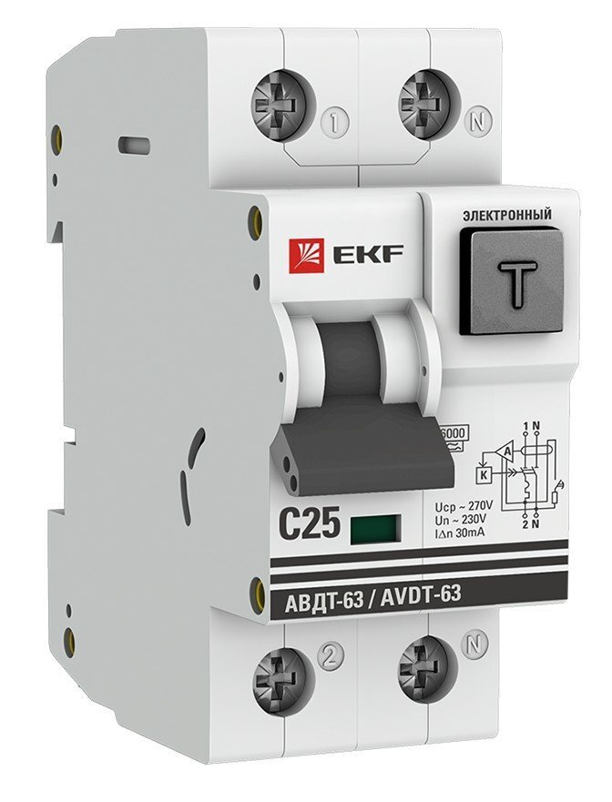 Автоматический выключатель дифференциального тока АВДТ-63 EKF PROxima представляет аппарат, сочетающий функции автоматического выключателя с электромеханическим или электронным УЗО. При обнаружении автоматическим выключателем в защищаемом участке сети тока утечки (повреждения) на землю или сверхтока (тока перегрузки или короткого замыкания) происходит срабатывание устройства, приводящее к отключению защищаемой сети. Возможна коммутация алюминиевым и медным проводником.