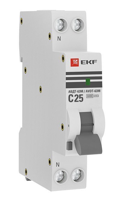 Автоматический выключатель дифференциального тока малогабаритный АВДТ-63М EKF PROxima представляет аппарат, сочетающий функции автоматического выключателя с электронным УЗО типа АС в компактном корпусе шириной один модуль. При обнаружении автоматическим выключателем на защищаемом участке сети тока утечки (повреждения) на землю или сверхтока (тока перегрузки или короткого замыкания) происходит срабатывание устройства, приводящее к отключению защищаемой сети. Особое отличие дифференциальных автоматических выключателей EKF с электронным УЗО – в наличии блока защиты от перенапряжения. Возможна коммутация алюминиевым и медным проводом.