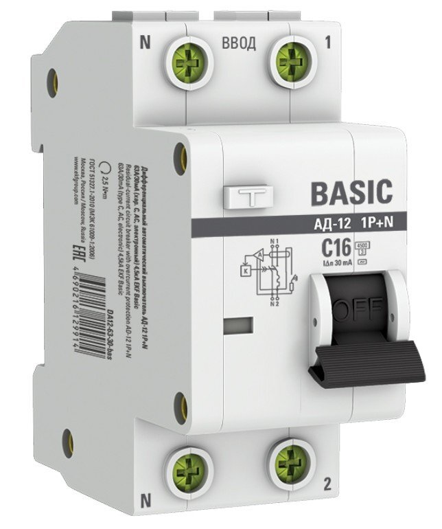 Выключатели автоматические дифференциального тока (дифавтоматы) АД-12 EKF серии Basic представляют собой аппараты, сочетающие функции автоматического выключателя с устройством защитного отключения. При обнаружении автоматическим выключателем в защищаемом участке сети тока утечки (повреждения) на землю или сверхтока (тока перегрузки или короткого замыкания) происходит срабатывание устройства, приводящее к отключению защищаемой сети.