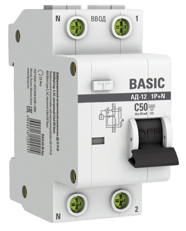 Выключатели автоматические дифференциального тока (дифавтоматы) АД-12 EKF серии Basic представляют собой аппараты, сочетающие функции автоматического выключателя с устройством защитного отключения. При обнаружении автоматическим выключателем в защищаемом участке сети тока утечки (повреждения) на землю или сверхтока (тока перегрузки или короткого замыкания) происходит срабатывание устройства, приводящее к отключению защищаемой сети.