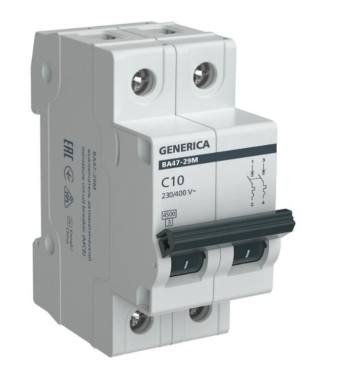 Автоматический выключатель IEK GENERICA ВА47-29М 2P C 10А 4,5кА (MVA21-2-010-C-G)