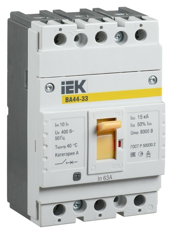 Автоматические выключатели ВА44 IEK предназначены для проведения тока в нормальном режиме и отключения тока при коротких замыканиях, перегрузке, недопустимых снижениях напряжения, а также для оперативных включений и отключений участков электрических цепей.