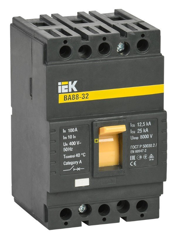 Автоматические выключатели ВА88 предназначены для проведения тока в нормальном режиме и отключения тока при коротких замыканиях, перегрузке, недопустимых снижениях напряжения, а также для оперативных включений и отключений участков электрических цепей и рассчитаны для эксплуатации в электроустановках с номинальным рабочим напряжением до 400 В и на номинальные токи от 12,5 до 1600 А.