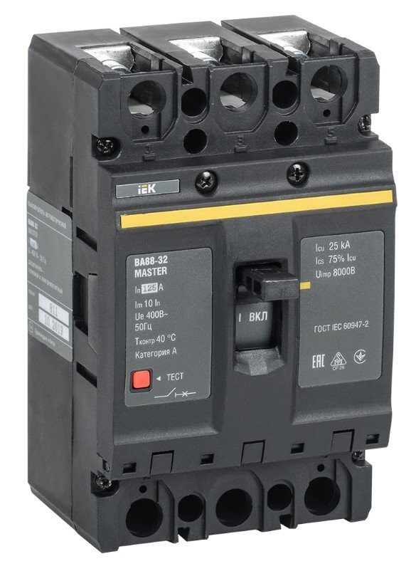 Номинальный ток, А 125 | Тип расцепителя Тепловой; электромагнитный |