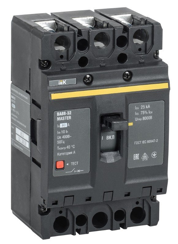 Автоматический выключатель в литом корпусе ВА88 MASTER предназначен для защиты электрических сетей от токов короткого замыкания, токов перегрузки, недопустимых снижений напряжения, а также для проведения тока в нормальном режиме. Автоматические выключатели производятся в 5 типоразмерах, оснащены термомагнитным расцепителем на токи от 16 до 800А и электронным расцепителем на токи от 125 до 800А. Рабочее напряжение 400/690 В. Конструкция автоматического выключателя предусматривает возможность самостоятельной установки дополнительных устройств на объекте заказчика.