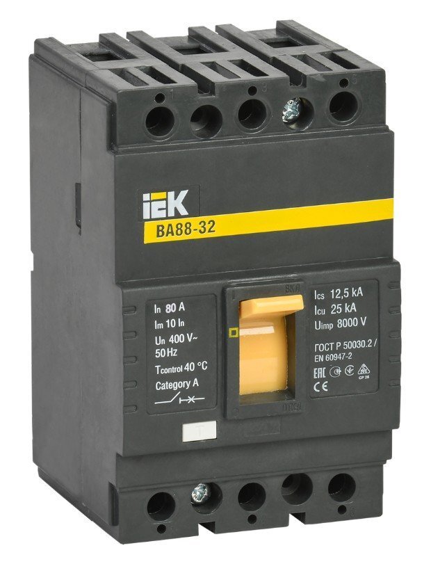 Номинальный ток, А 80 | Тип расцепителя Тепловой; электромагнитный |