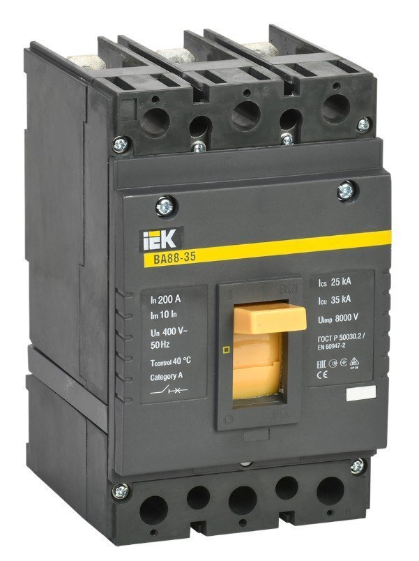 Автоматические выключатели ВА88 предназначены для проведения тока в нормальном режиме и отключения тока при коротких замыканиях, перегрузке, недопустимых снижениях напряжения, а также для оперативных включений и отключений участков электрических цепей и рассчитаны для эксплуатации в электроустановках с номинальным рабочим напряжением до 400 В и на номинальные токи от 12,5 до 1600 А.