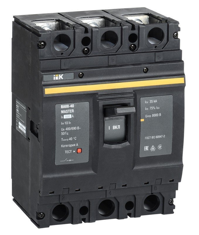 Автоматический выключатель в литом корпусе ВА88 MASTER предназначен для защиты электрических сетей от токов короткого замыкания, токов перегрузки, недопустимых снижений напряжения, а также для проведения тока в нормальном режиме. Автоматические выключатели производятся в 5 типоразмерах, оснащены термомагнитным расцепителем на токи от 16 до 800А и электронным расцепителем на токи от 125 до 800А. Рабочее напряжение 400/690 В. Конструкция автоматического выключателя предусматривает возможность самостоятельной установки дополнительных устройств на объекте заказчика.