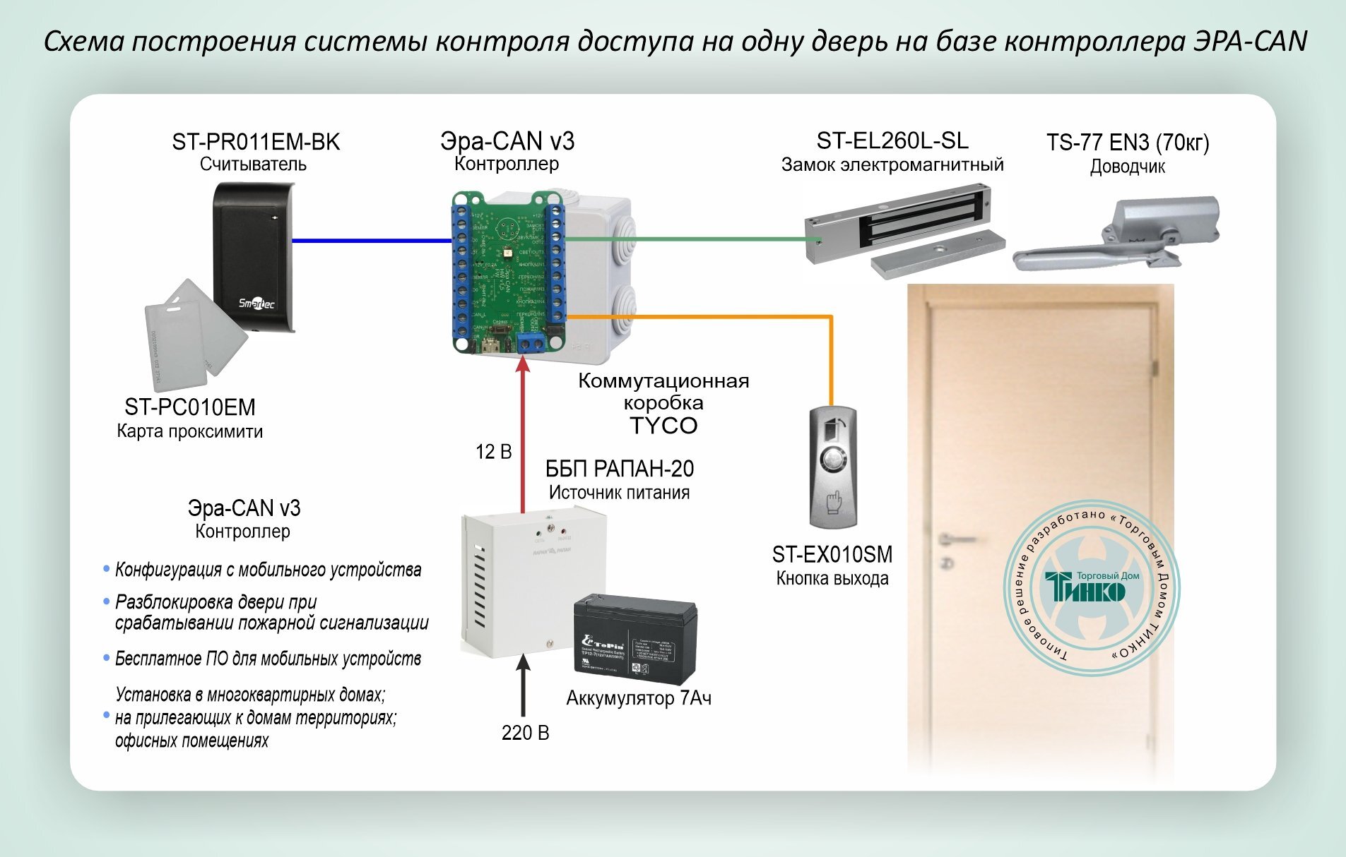 Автономная система контроля доступа на одну дверь с электромагнитным замком Эра новых технологий Типовое решение: СКУД-001
