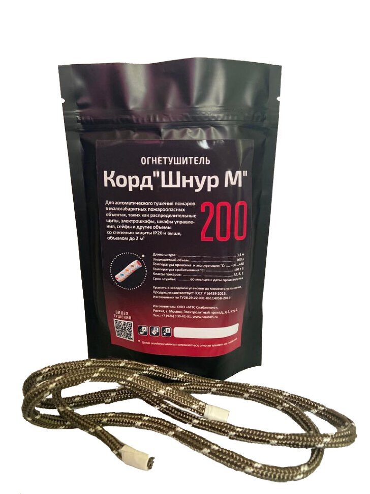 Корд «Шнур М» работает как интеллектуальная система пожаротушения. Воздействие температуры на его активные компоненты вызывает выделение огнетушащего компонента, вплоть до полного подавления очага пожара.