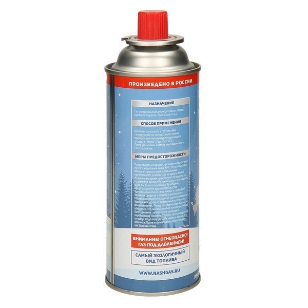 Одноразовый газовый баллон (картридж) для газовых горелок (резаков), обогревателей, портативных плит и ламп, со смесью, более стабильно работающей в условиях низких температур.