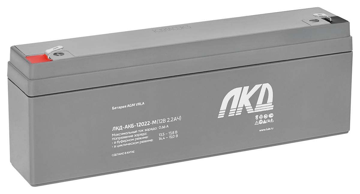 Аккумулятор герметичный свинцово-кислотный необслуживаемый 12В, 2.2 Ач. Предназначен для использования в составе источников бесперебойного питания, источников резервного питания, систем контроля доступа, систем тревожного оповещения и др. Производится по технологии AGM (Absorbent Glass Mat — электролит, абсорбированный в стекловолоконном сепараторе). Герметизация батарей проводится посредством использования клапана, обеспечивающего сброс избыточного давления газов в аккумуляторе (VRLA).