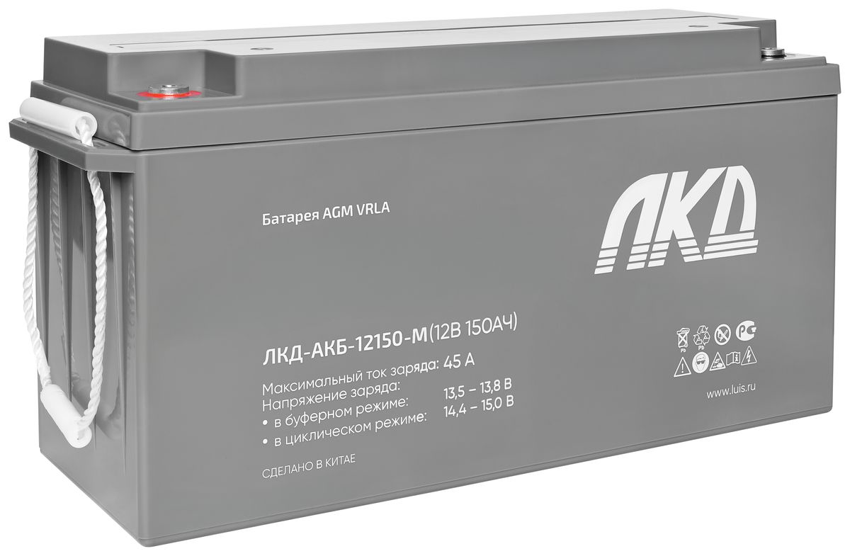 Аккумулятор герметичный свинцово-кислотный необслуживаемый 12В, 150 Ач. Предназначен для использования в составе источников бесперебойного питания, источников резервного питания, систем контроля доступа, систем тревожного оповещения и др. Производится по технологии AGM (Absorbent Glass Mat — электролит, абсорбированный в стекловолоконном сепараторе). Герметизация батарей проводится посредством использования клапана, обеспечивающего сброс избыточного давления газов в аккумуляторе (VRLA).