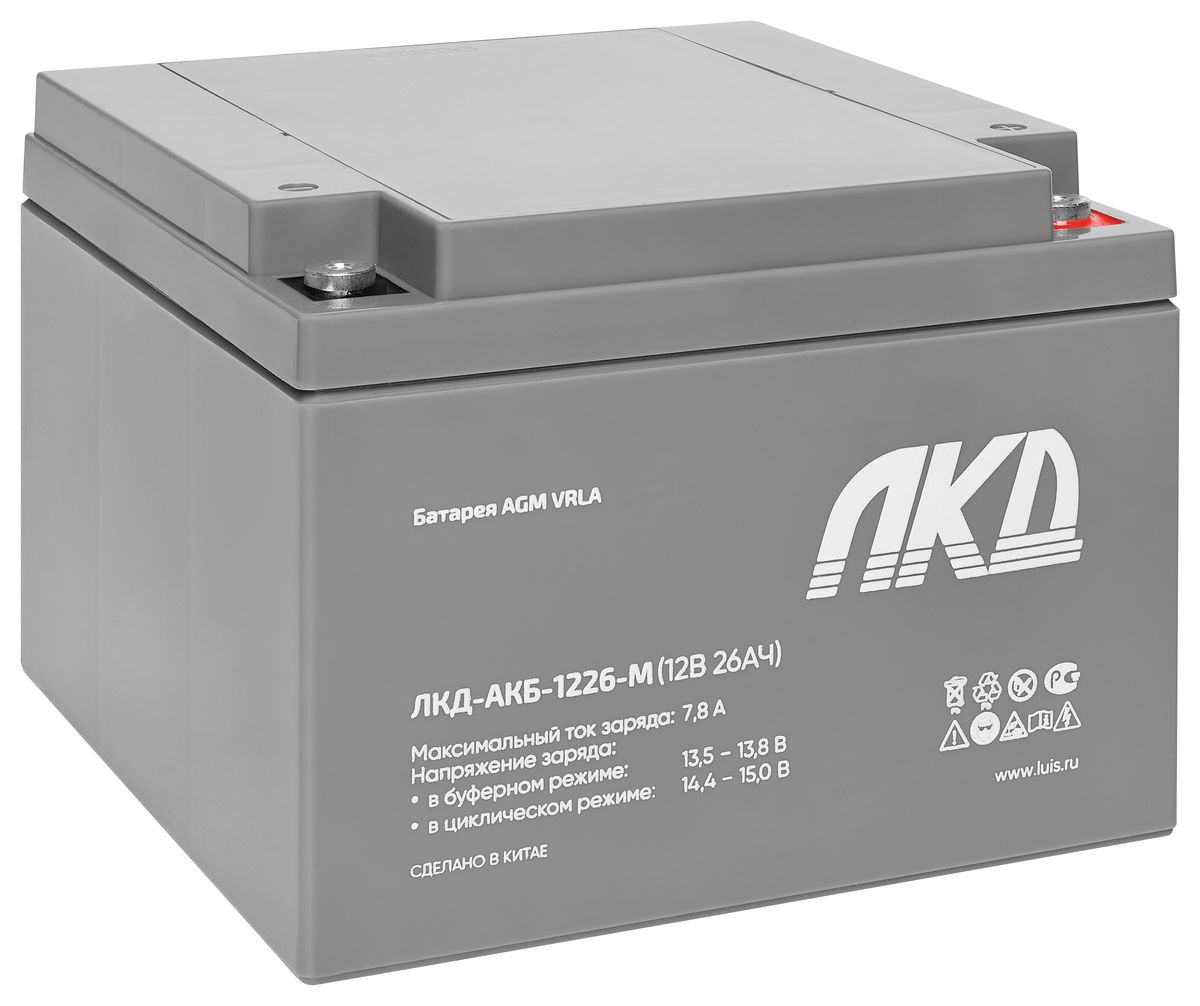 Аккумулятор герметичный свинцово-кислотный необслуживаемый 12В, 26 Ач. Предназначен для использования в составе источников бесперебойного питания, источников резервного питания, систем контроля доступа, систем тревожного оповещения и др. Производится по технологии AGM (Absorbent Glass Mat — электролит, абсорбированный в стекловолоконном сепараторе). Герметизация батарей проводится посредством использования клапана, обеспечивающего сброс избыточного давления газов в аккумуляторе (VRLA).