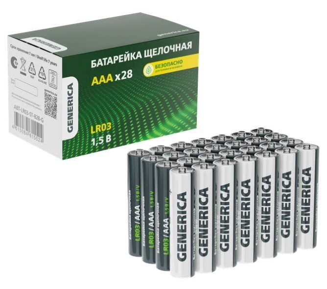 Батарейка щелочная IEK Батарейка Alkaline LR03/AAA GENERICA (28 шт) (ABT-LR03-ST-B28-G)