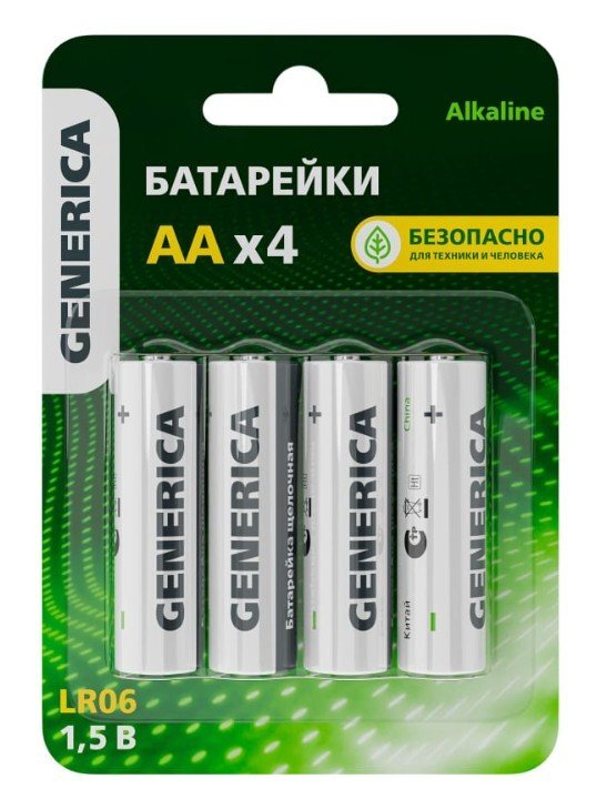 Батарейка щелочная IEK Батарейка Alkaline LR06/AA GENERICA (4 шт) (ABT-LR06-ST-L04-G)