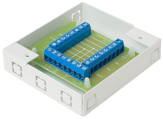 Позволяет удобно подключить ИПДЛ к магистрали. Две группы клеммников для подключения входного и выходного кабелей, оконечного и добавочного резисторов и одна для подключения непосредственно к ИПДЛ.