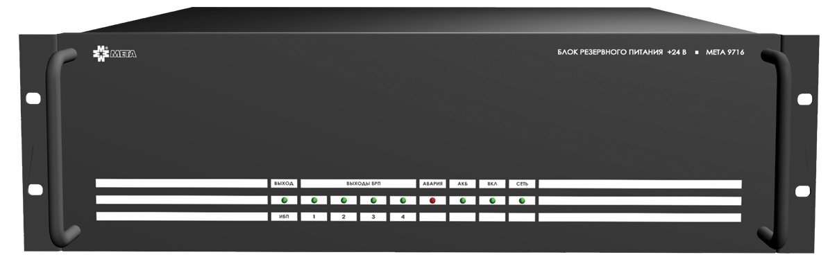 Блок резервного питания МЕТА 9716 предназначен для работы в составе системы оповещения и управления эвакуацией МЕТА в качестве источника резервного питания +24 В и источника бесперебойного питания +24 В