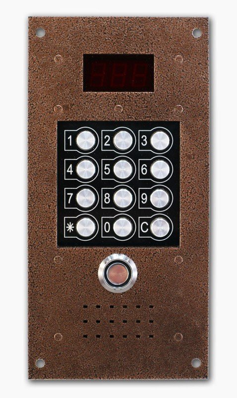 Имеет цифровую адресацию абонентских устройств, до 255 абонентов; индикация трёхразрядная, семисегментная; конструктивно лицевая панель стальная, общей толщиной 5.0 мм; клавиатура кнопочная двухпружинная, с упорной стальной пластиной; подсветка наборного поля клавиатуры; встроенные электрические цепи управления и размагничивания электромагнитного замка.