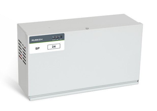Боксы резервного электропитания серии БР предназначены для увеличения времени непрерывной работы от аккумуляторных батарей (АКБ) источников вторичного электропитания ИВЭПР производства ГК «Рубеж». БР предназначен для подключения к источникам соответствующих исполнений (обозначенных «БР»). Выход бокса подключается к клеммам «+Р» и «-Р» в ИВЭПР, тем самым увеличивая общую ёмкость АКБ. Вход БР подключается к сети ~230 В. При восстановлении сетевого напряжения бокс автоматически включает заряд установленных в нём аккумуляторных батарей.
