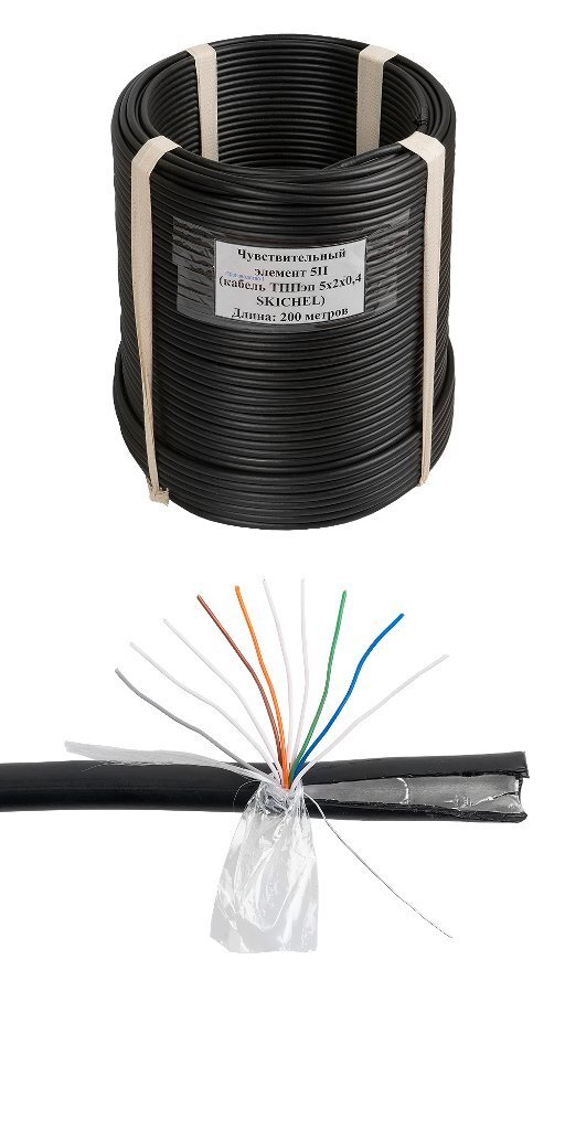 Чувствительный элемент 5П на базе кабеля ТППэп 5х2х0,4 для работы в составе периметровых извещателей "Гюрза" всех_x000D_ серий; для применения только на гибких ограждениях; концы герметизированы. Гарантия 3 года. Бухта 200м.