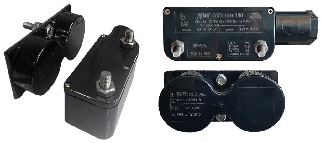 Датчики положения магнитогерконовые взрывозащищённые ДПМГ-2 предназначены для контроля положения перемещающихся отдельных конструкций и механизмов из магнитопроводных и не магнитопроводных материалов при выполнении различных технологических процессов во взрывоопасных зонах. Конструктивно датчики положения состоят из двух компонентов: датчика магнитоуправляемого (блока геркона) и задающего элемента (блока магнита), выполненных из антистатичного пластика с поверхностным сопротивлением не более 109 Ом. Корпус блока геркона оборудован тампером на вскрытие с выводом контактов тампера на отдельный клеммник.