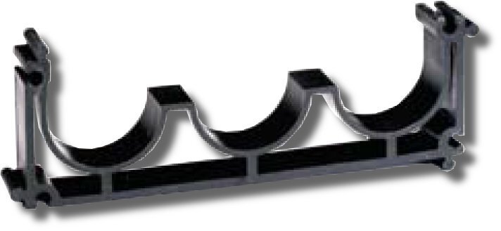 Предназначен для закрепления труб, препятствие смещению, сохранение расстояния между гибкими, жесткими, дренажными гофрированными