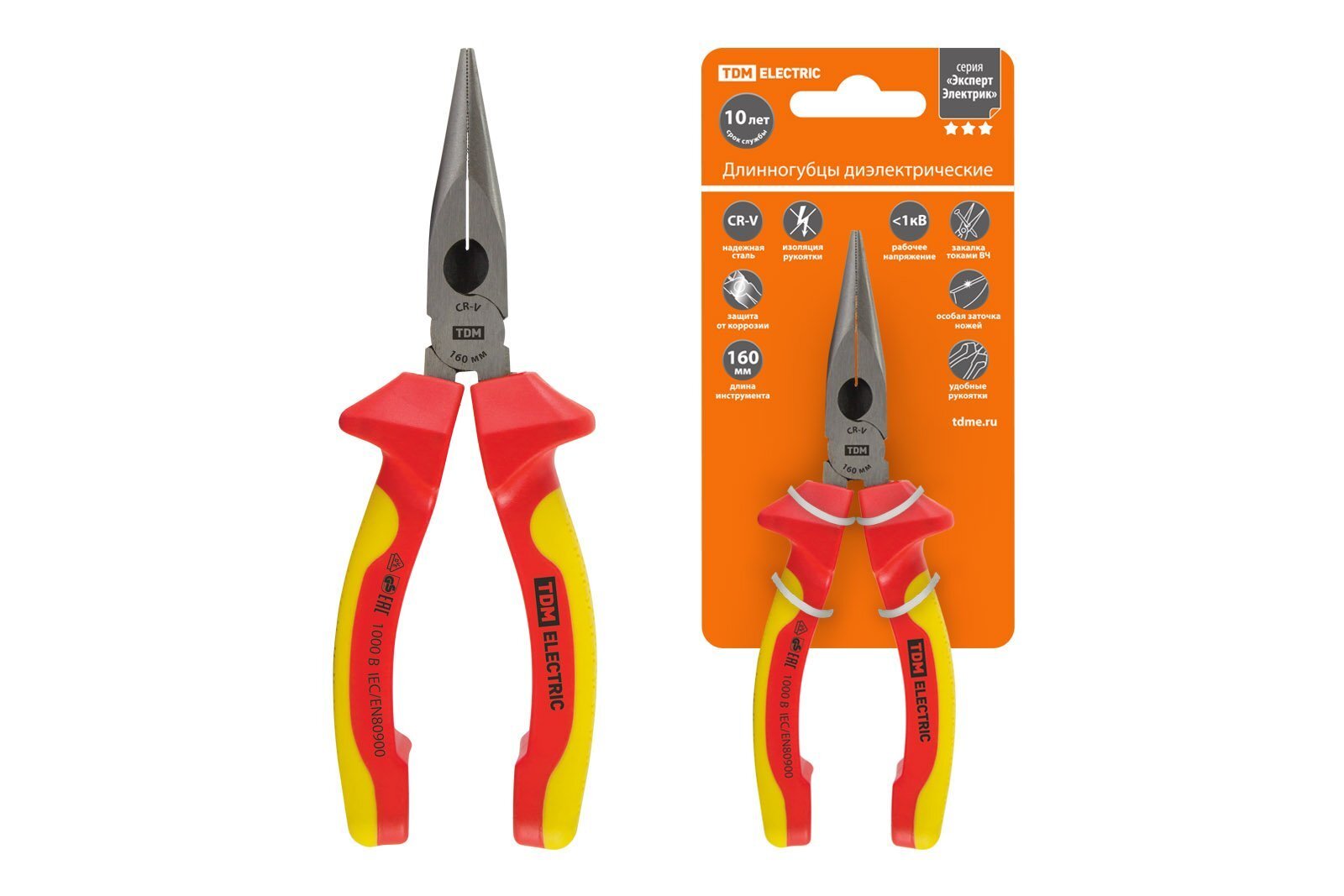 Длинногубцы TDM ЕLECTRIC Длинногубцы диэлектрические 160мм, 1000В, CR-V «ЭкспертЭлектрик» TDM (SQ1010-0103)