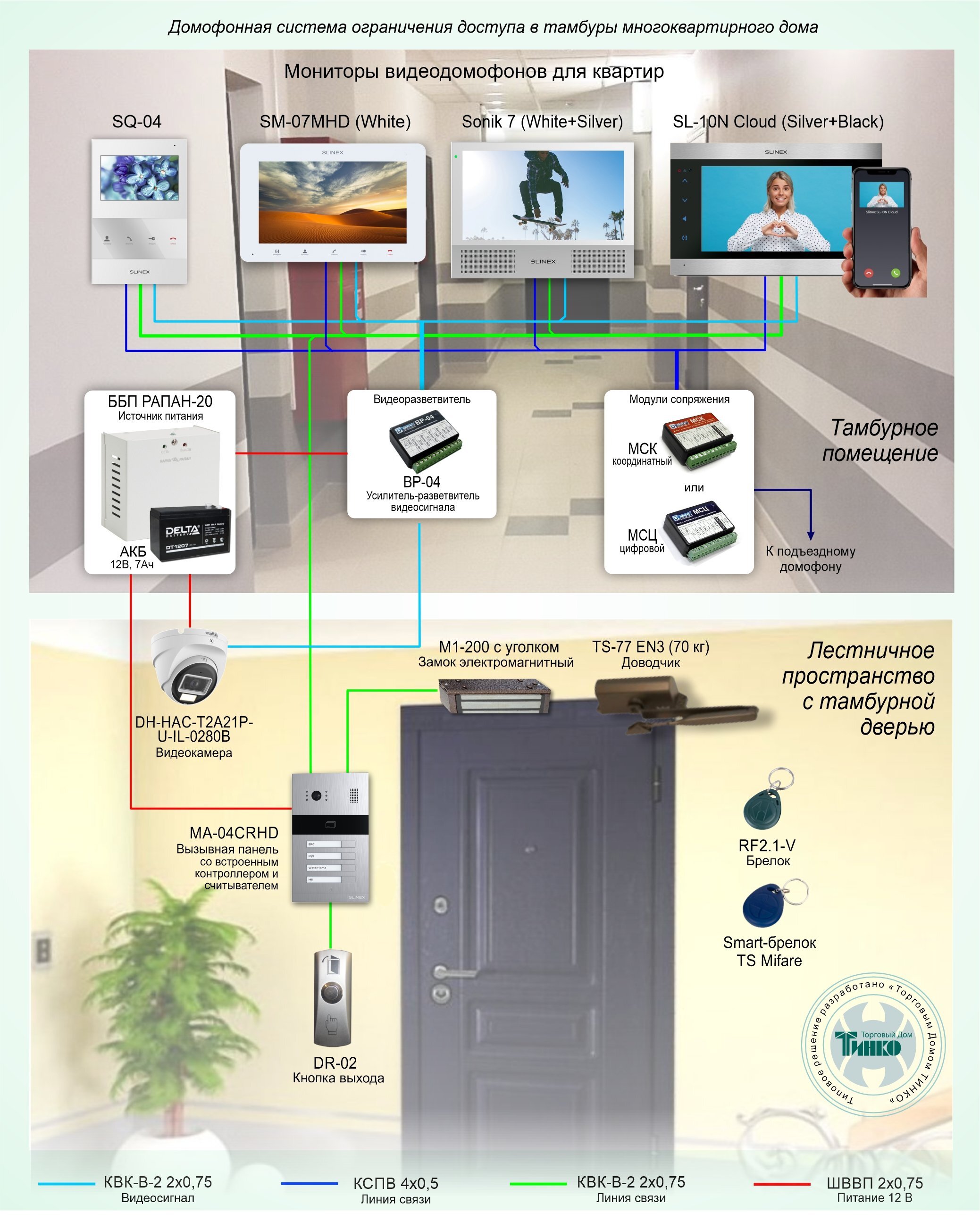Домофонная система ограничения доступа в тамбуры многоквартирного дома SLINEX Типовое решение: ДМФ-009