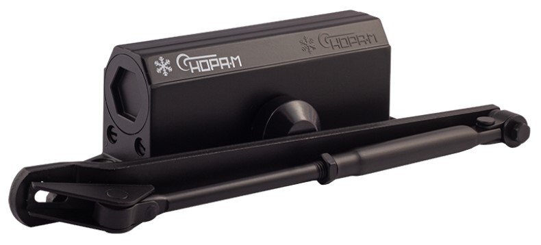 Доводчик предназначен для дверей весом 50–80 кг, изготовленных из дерева, пластика, стекла, а также для лёгких металлических дверей. Рекомендуется как для межкомнатных, так и для нетяжёлых входных дверей. Длина рычага этой модели позволяет использовать изделие на дверях с полотном нестандартной ширины. Угол открытия двери может меняться от 90? (при ширине дверного полотна 1100 мм и его весе 80 кг) до 180? (при ширине 950 мм и весе 60 кг).