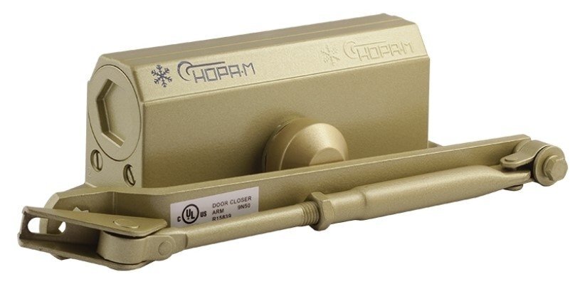 Универсальный по типу установки доводчик модели 3S с малым рычагом. Механизм устанавливается на двери весом 50–80 кг, сделанные из дерева, пластика, металла и других материалов. Рекомендуется для дверей, не требующих открывания на 180? (например, в тех случаях, когда открывание ограничено стеной). Для увеличения угла открывания двери до 180? корпус доводчика крепится на короб двери с противоположной стороны от петель. Подробно о выборе места установки можно прочитать в инструкции к изделию.