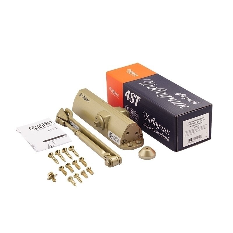 Универсальный дверной доводчик для дверей левого и правого открывания. Предназначен для установки на межкомнатные и входные двери весом от 25 до 120 кг. Скорость закрывания двери регулируется при установке в двух диапазонах при помощи винтов на корпусе доводчика.