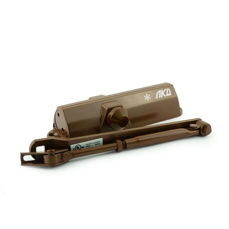 Гидравлический, дверной, морозостойкий доводчик. Универсальный по типу установки. Механизм устанавливается на двери весом 25-120 кг, сделанные из дерева, пластика, металла и других материалов. Применение доводчиков допускается в том числе для противопожарных и противодымных дверей. Тяга и набор крепежа для различных типов дверей поставляется в комплекте.