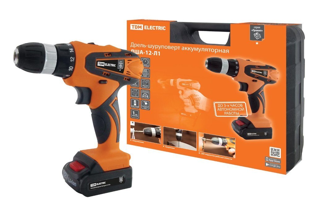 Дрель-шуруповерт TDM ЕLECTRIC ДША-12-Л1 12В, 1,3А*ч Li-Ion, 22Нм, 0-1350 об/мин, кейс "Гранит" TDM (SQ1030-0201)