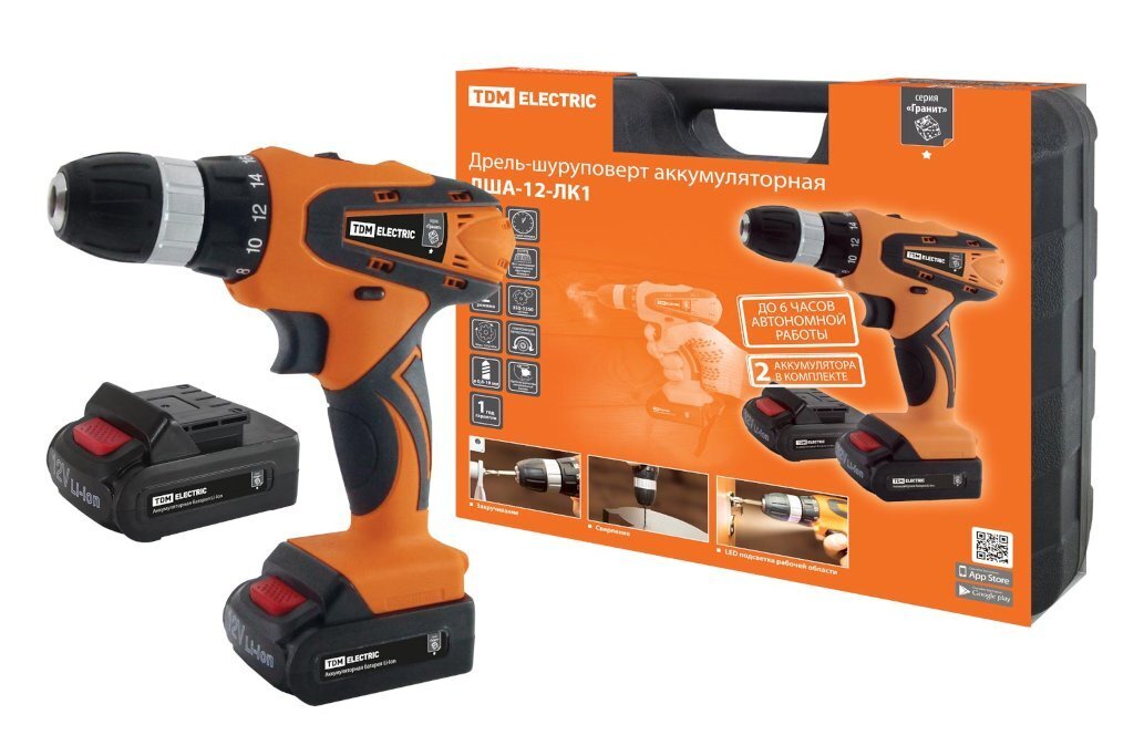 Дрель-шуруповерт TDM ЕLECTRIC ДША-12-ЛК1 12В, 1,3А*ч Li-Ion 2 шт, 22 Нм, 0-1350 об/мин, кейс "Гранит" TDM (SQ1030-0202)