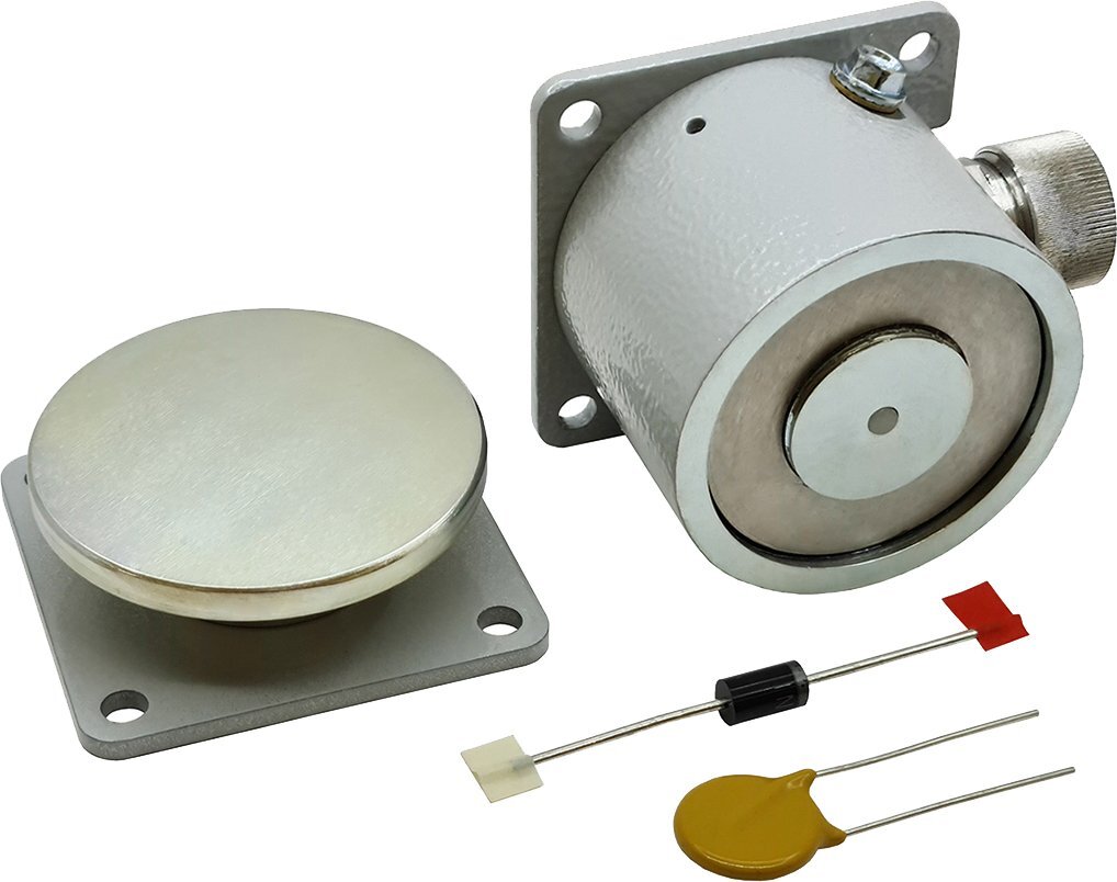 Взрывозащищенный электромагнитный замок без встроенных датчиков; сила удержания 50 кг, маркировка взрывозащиты 1Ex mb IIC T5 Gb X/Ex mb IIIC T85°C Db X(исполнение для взрывоопасных газовых и пылевых сред, кроме подземных шахт и их наземных строений). 12В; 0,35 А; 60х60х45 мм; 1,5 кг; IP54; -40?С...+50?С; длина присоединенного кабеля 2м. В комплекте: корпус замка, пластина корпуса, якорь._x000D_