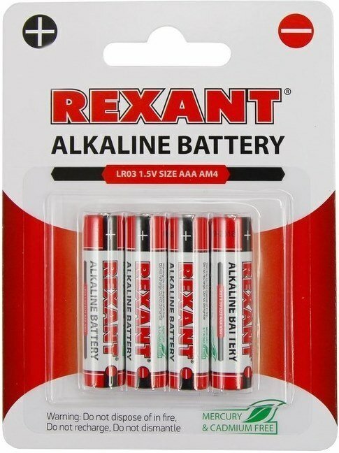 Элемент питания Rexant Алкалиновая батарейка AAA/LR03 1,5 V 4 шт. блистер (30-1012)