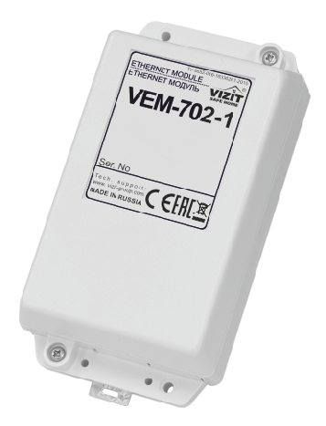 Ethernet модуль VEM-702-1 предназначен для использования в составе видеодомофонов VIZIT, совместно с блоками управления БУД-485М(-730, -585), КТМ685(685Р, 606, 608, 608Р), блоками вызова серии 700, блоками коммутации БК-502 и обеспечивает интеграцию видеодомофона с облачным сервисом РосДомофон.