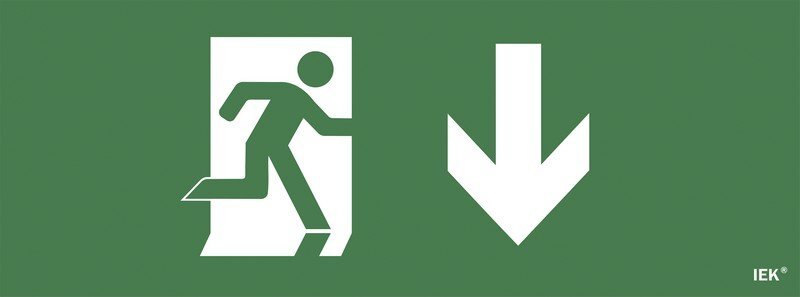 Самоклеящаяся этикетка "Фигура/стрелка вниз" для ДПА IP20/54, размер знака 240х90 мм, подходит для нанесения на аварийные светильники ДПА 2101, 2104, 2105, 5030, 5032, 5040, 5043, цвет зеленый