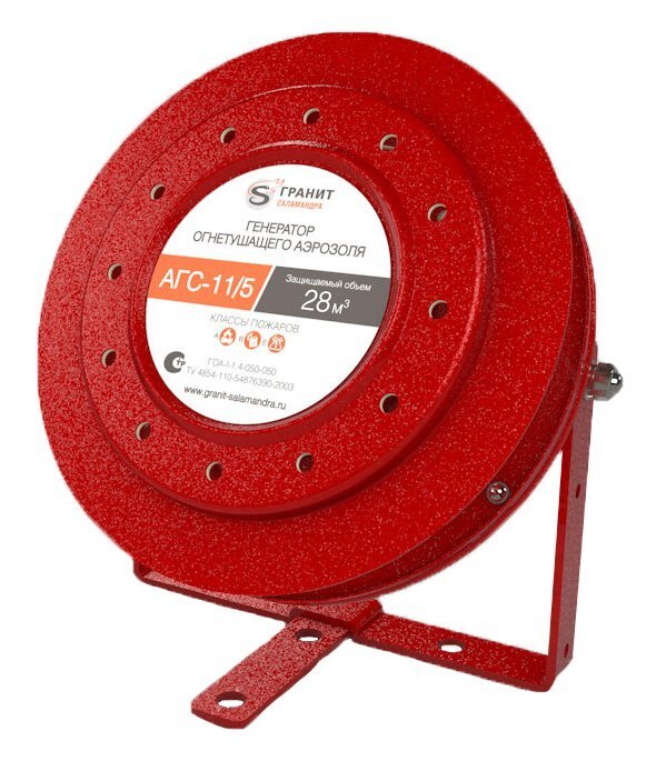 АГС-11/5 представляет собой невысокий металлический корпус цилиндрической формы, на боковой поверхности которого по периметру находится сопловая щель. При своих малых габаритах генератор обеспечивает существенный защищаемый объем - до 28,0 м3.