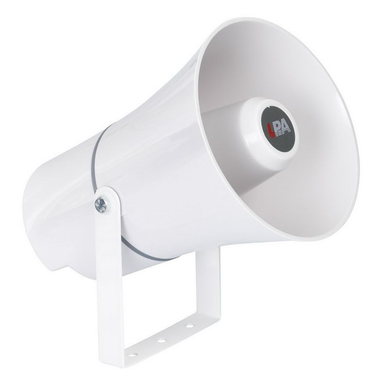 Рупор LPA-10H применяется для озвучивания больших и зашумленных пространств благодаря превосходному сочетанию высокого звукового давления и узкой направленности. Мощность - 10Вт, частотный диапазон 200 - 9 000 Гц. Корпус выполнен из высокопрочного ABS-пластика, герметичен (степень защиты IP66) и предназначен для эксплуатации на улице в широком температурном диапазоне от -50°С до +60°С. Универсальный крепеж в комплекте значительно упрощает монтаж.